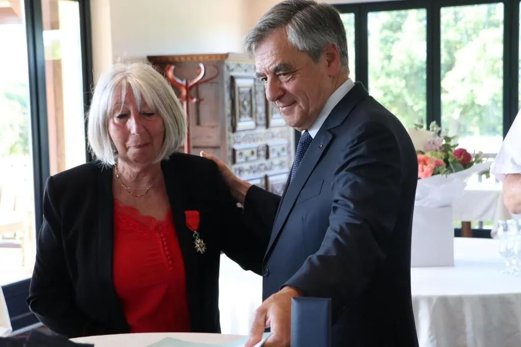 François Fillon et la maire de Martine Crnkovic, maire de Louailles, lors de la remise de légion d’honneur de cette dernière (image d’illustration). © Archives Ouest-France