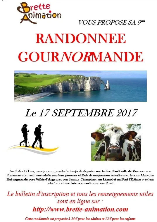 Brette Animation vous invite le 17 septembre à participer à sa 9ème randonnée gourmande qui aura pour thème cette année la Normandie.