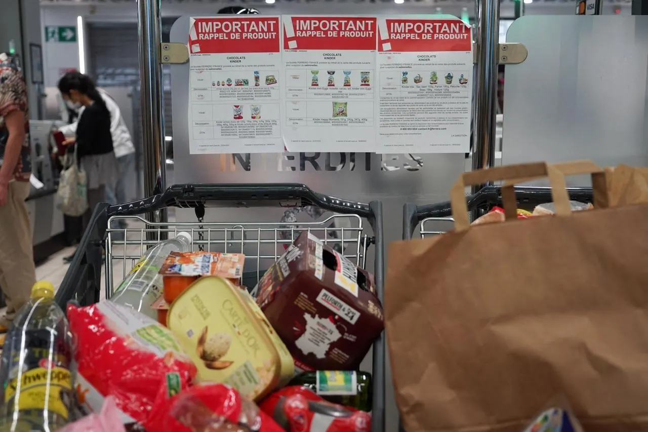 Une liste de produits rappelés est affichée aux caisses d’un supermarché. Photo d’illustration. © Hans Lucas via AFP
