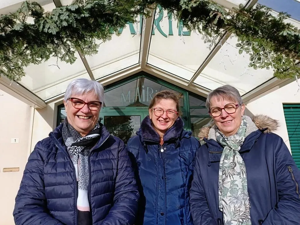 Micheline Nay, Sabine Roger et Régine Renou habitantes engagées de Solesmes (Sarthe), s’apprête à parcourir la commune pour le recensement 2025. © Ouest-France