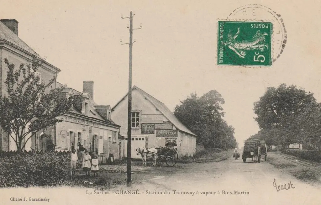 Certains l’ont oublié, d’autres ne le savent peut-être pas, mais le tramway passait à Changé (Sarthe). La station se situait à Bois-Martin, nœud ferroviaire des lignes vers Château-du-Loir et La Chartre-sur-le-Loir.