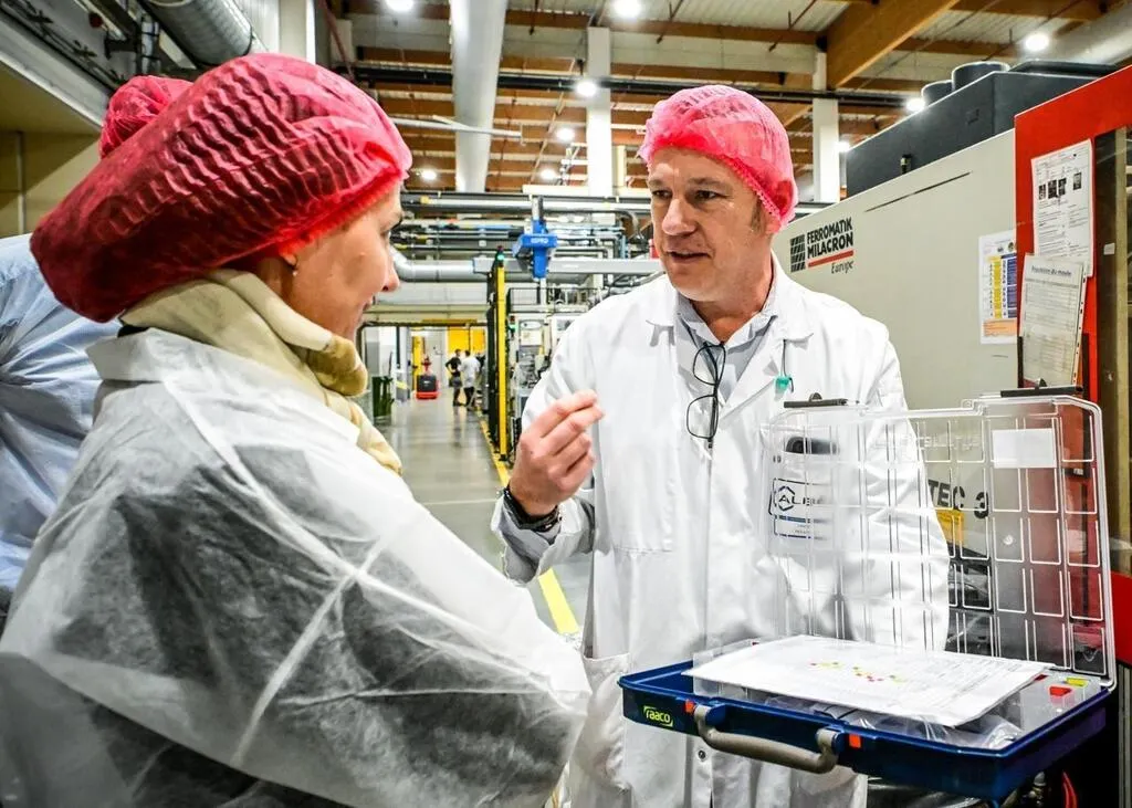 Lors d’une visite, Laurent Pesqueux, directeur du site sarthois (à droite) a présenté l’essentiel des activités de l’entreprise Albéa, spécialiste dans la conception des capots de parfum, à Christine Torres, sous-préfète de l’arrondissement du Mans et référente France 2030 (à gauche). © Photo : Le Maine Libre - Yvon LOUE