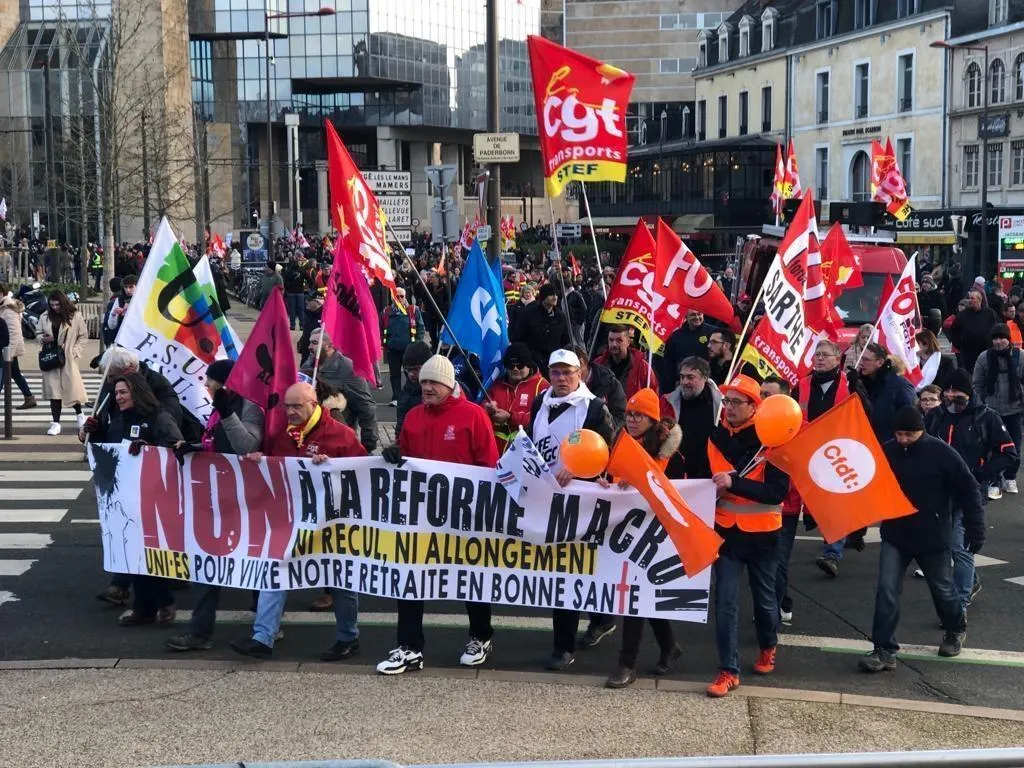 La grande ampleur du mouvement social contre la réforme des retraites ce jeudi 19 janvier 2023 se traduit également en Sarthe, avec une forte mobilisation dans les écoles et les transports. Après des rassemblements à Sablé-sur-Sarthe et La Flèche, place ce jeudi après-midi à la manifestation au Mans. Revivez la mobilisation avec les journalistes du Maine Libre et de Ouest-France.