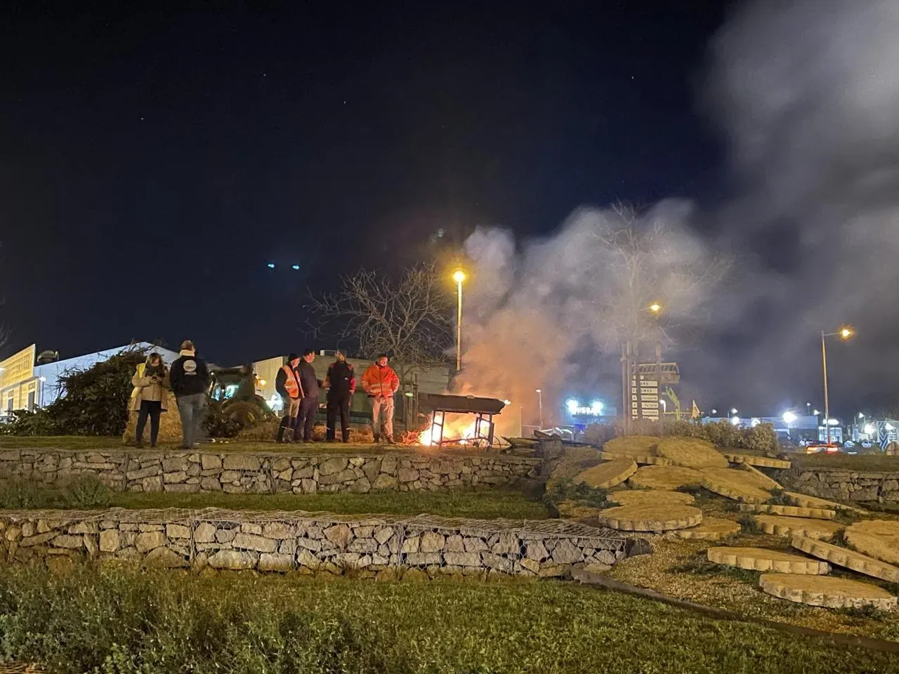 Le 25 novembre 2025, des agriculteurs avaient allumé un feu dans le rond-point LDC à Sablé-sur-Sarthe pour dénoncer, notamment, la prochaine signature des accords Mercosur. © Archives Ouest-France