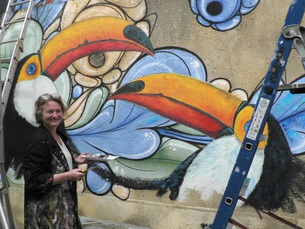 Terroux Sophie transforme une Å“uvre existante en toucans colorés. © Ouest-France
