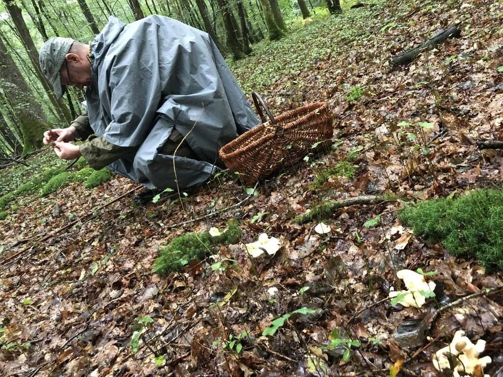, sourit le quadra sous sa cape de pluie, bâton de rando et panier à la main, chaussures de saison. Ce jour-là , il ne fait que pleuvoir. À verse.