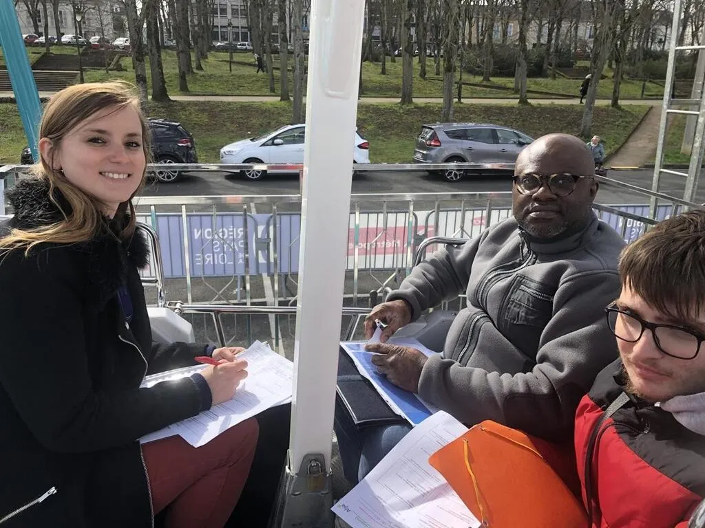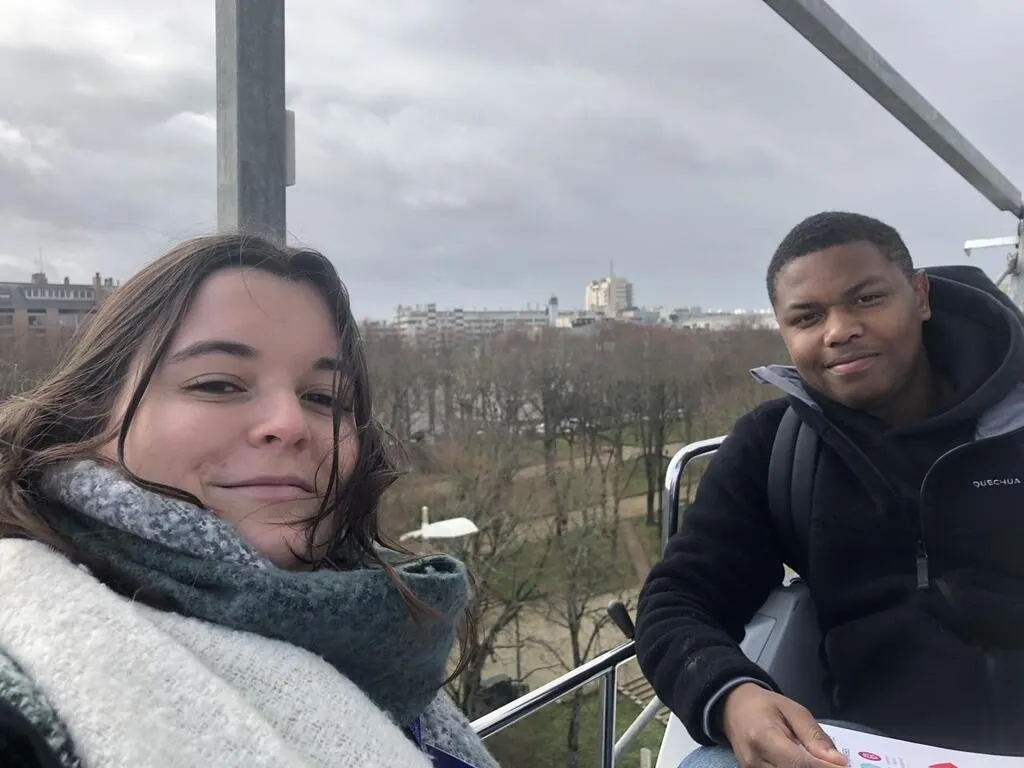 Alison, assistante RH pour le transporteur sarthois L’Étoile Routière, et Abdou intéressé par cette filière. 5 mn après l’entretien dans la grande roue, les deux « voyageurs » sont enthousiastes. © Ouest-France