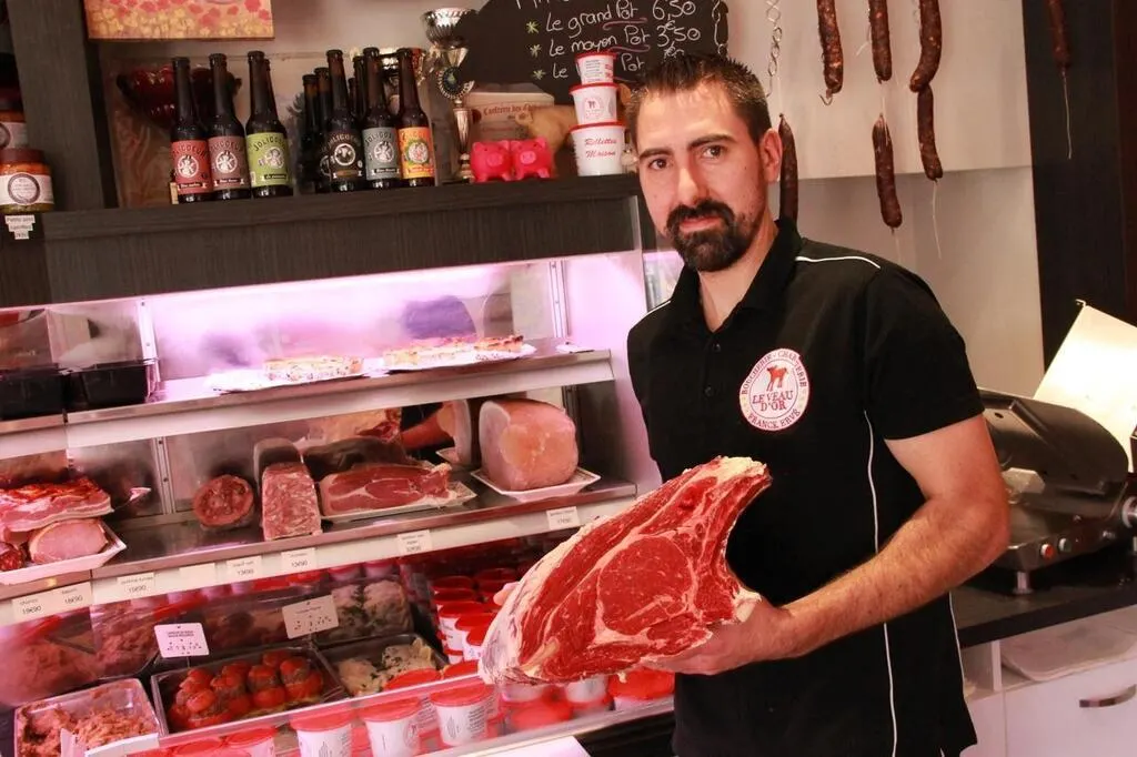 Franck Ervé, patron de la boucherie-charcuterie Le Veau d’or, située avenue Félix-Geneslay, au Mans (Sarthe). Ouest-France