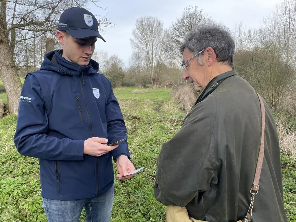 Clément Thérouin fait partie des 33 garde-pêches que compte la Sarthe. En ce samedi 9 mars 2024, premier jour de l’ouverture la pêche à la truite, il a contrôlé des pêcheurs à Tuffé. © Ouest-France