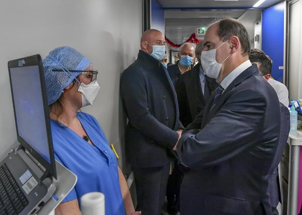 Le Mans, samedi 18 décembre 2021. Le Premier ministre Jean Castex est venu entendre un personnel soignant à bout de souffle à l’hôpital. © Photo Le Maine Libre – Yvon LOUÉ