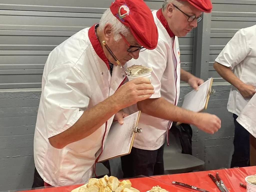 Xavier Trouillard, 64 ans, était ce dimanche 15 septembre 2024, juré au 32e concours départemental des meilleures rillettes, organisé lors de la Foire du Mans (Sarthe). Une expérience inédite pour ce Sarthois, qui a été tiré au sort pour intégrer le jury constitué, lui, de professionnels. Reportage.