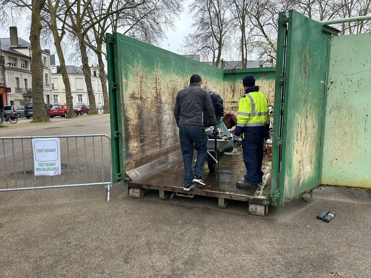 , détaille Guillaume Ricaux, responsable après-midi de la propreté publique à la ville d’Angers. Il poursuit : Ce n’est déjà pas facile pour les sinistrés. On fait donc venir les déchetteries dans les zones impactées. Pour eux, c’est plus simple, et ça permet d’éviter que des objets soient posés sur les trottoirs et gênent les piétons.