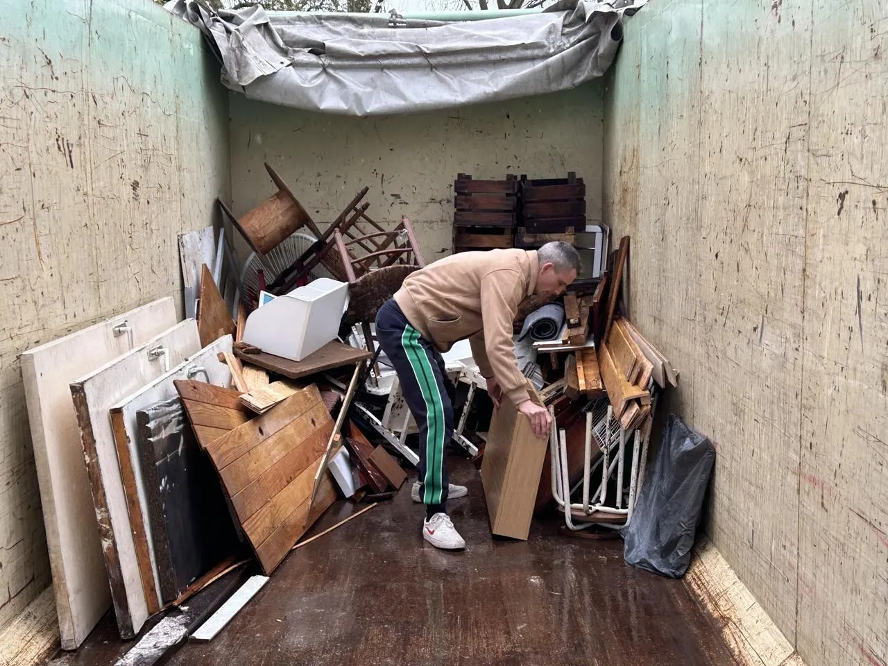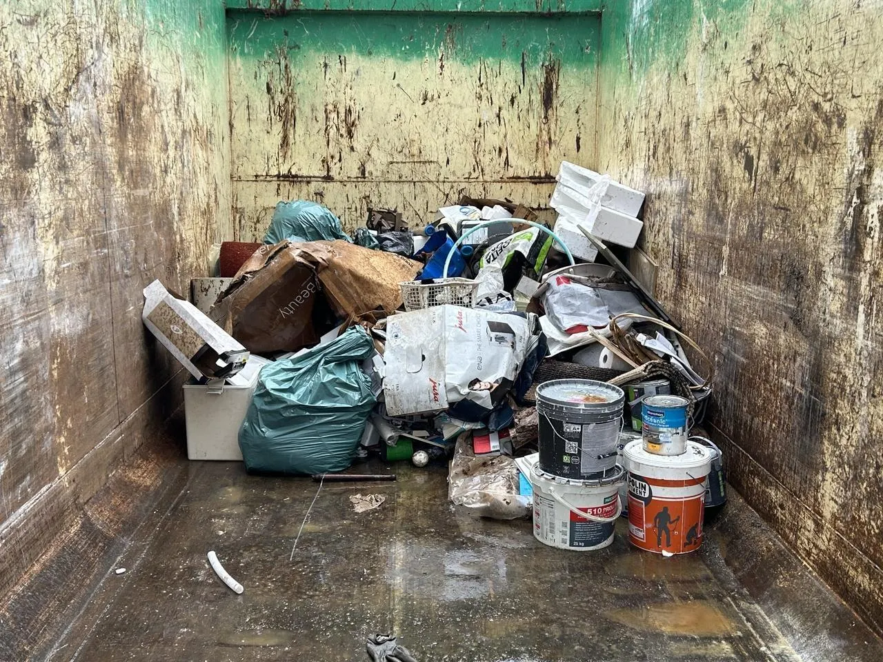 Matériel de loisirs, de camping, de sport, cartons d’électroménager, conserves de fruits, bouteilles de vin… les bennes accueillent des objets divers. Ouest-France