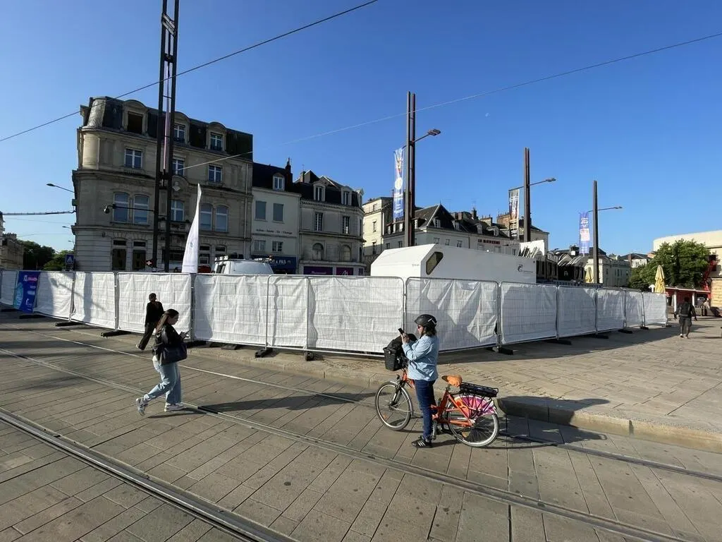 Les travaux du réseau de chaleur nord ont démarré place de la République derrière ces barrières. © Le Maine Libre