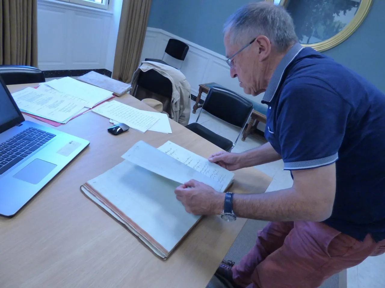 Philippe Gouin, conseiller municipal de Bazouges-Cré-sur-Loir, dans le sud de la Sarthe, a étudié le cartulaire pour en extraire les parties les plus intéressantes. Celles-ci seront présentées et expliquées lors de l’exposition organisée samedi 20 septembre 2025, à l’occasion des Journées européennes du patrimoine. © Ouest-France