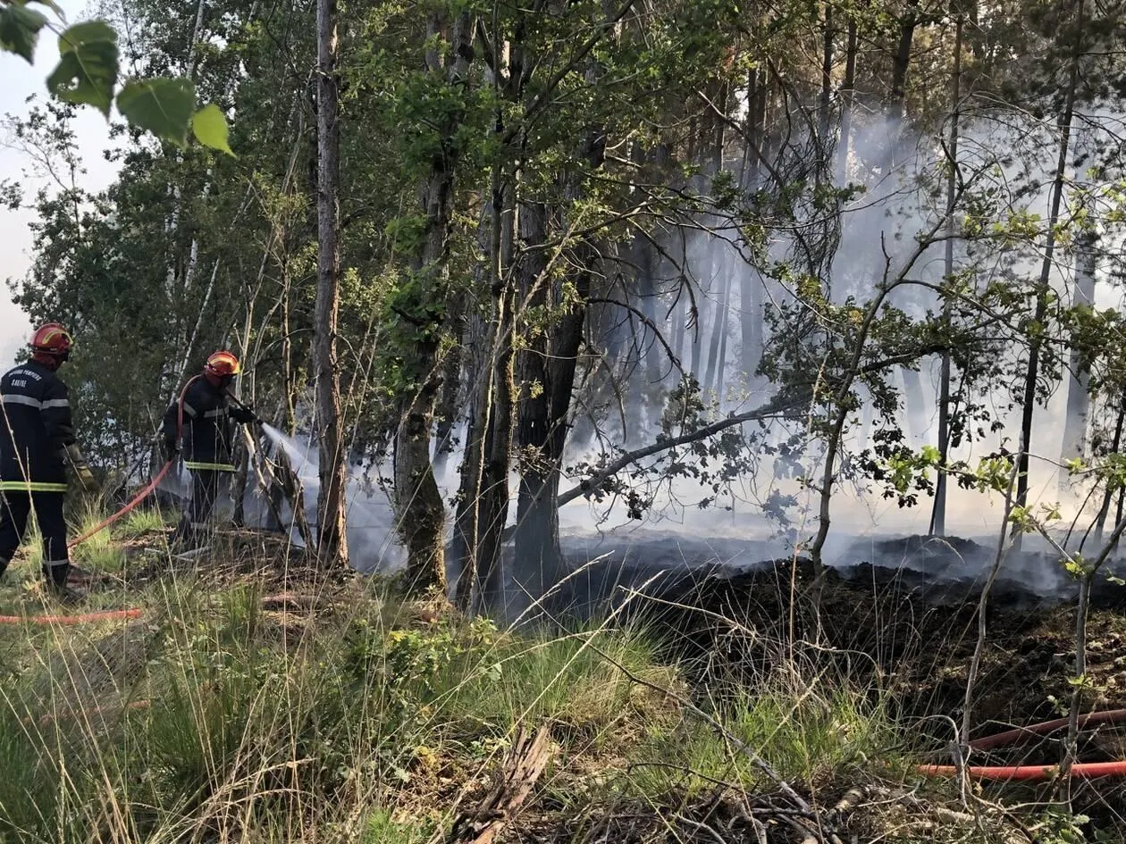 Les sapeurs-pompiers en juillet 2022 sur l’incendie touchant Mulsanne et Téloché, qui avait brûlé 330 hectares de végétation. © Archives Le Maine Libre