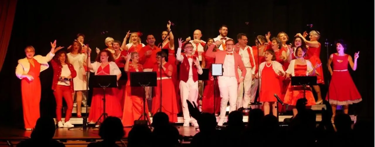Samedi soir, la salle de Vaujoubert était pleine à craquer pour le premier apéro-concert organisé par La Compagnie. Les 24 choristes de l’ensemble dirigé par Marie-Thérèse Brebion furent chaudement applaudis par 270 convives. « À travers Les Intemporels, 400 choristes dont les 24 de la Compagnie, vont donner un concert le 25 avril, à Antarès, autour de Johnny Hallyday et Mylène Farmer », annonce Françoise Peyramayou, trésorière de La Compagnie. © Ouest-France