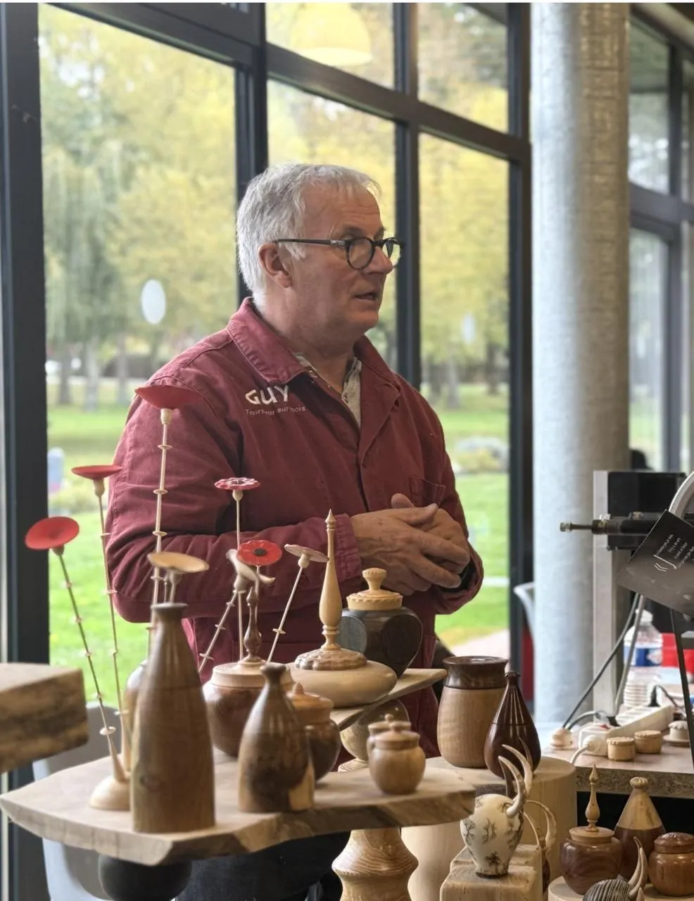 Guy Mainguy, tourneur d’art sur bois, un des rares artisans de la commune, a décidé d’ouvrir son atelier pour les fêtes de fin d’année.  À l’heure où l’on prône le local, les circuits courts, l’écoresponsabilité, après ma dernière présence à la maison du tourisme et du vignoble de la Chartre-sur-le Loir, je me suis dit qu’il pouvait être pertinent de proposer au public mes pièces tournées sur du bois glané auprès de chez moiÂ