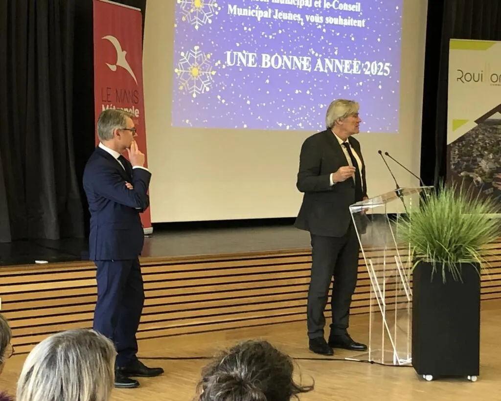 Laurent Paris, le maire de Rouillon, et Stéphane Le Foll, président de Le Mans Métropole. © Le Maine Libre