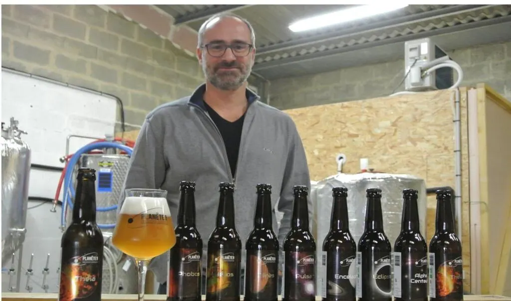 Passionné d’astronomie, ses huit premières créations se réfèrent aux astres et autres constellations. « J’ai opté pour des bières bios et donc le malte d’orge, qui constitue 99 % de la bière en dehors de l’eau, est bio. Comme les levures qui participent à la personnalité de chaque bière. » Que ce soit Alpha centauri (la triple), Éclipse (la noire), Phobos (l’ambrée) ou les autres, il y a une étiquette explicative sur chaque.