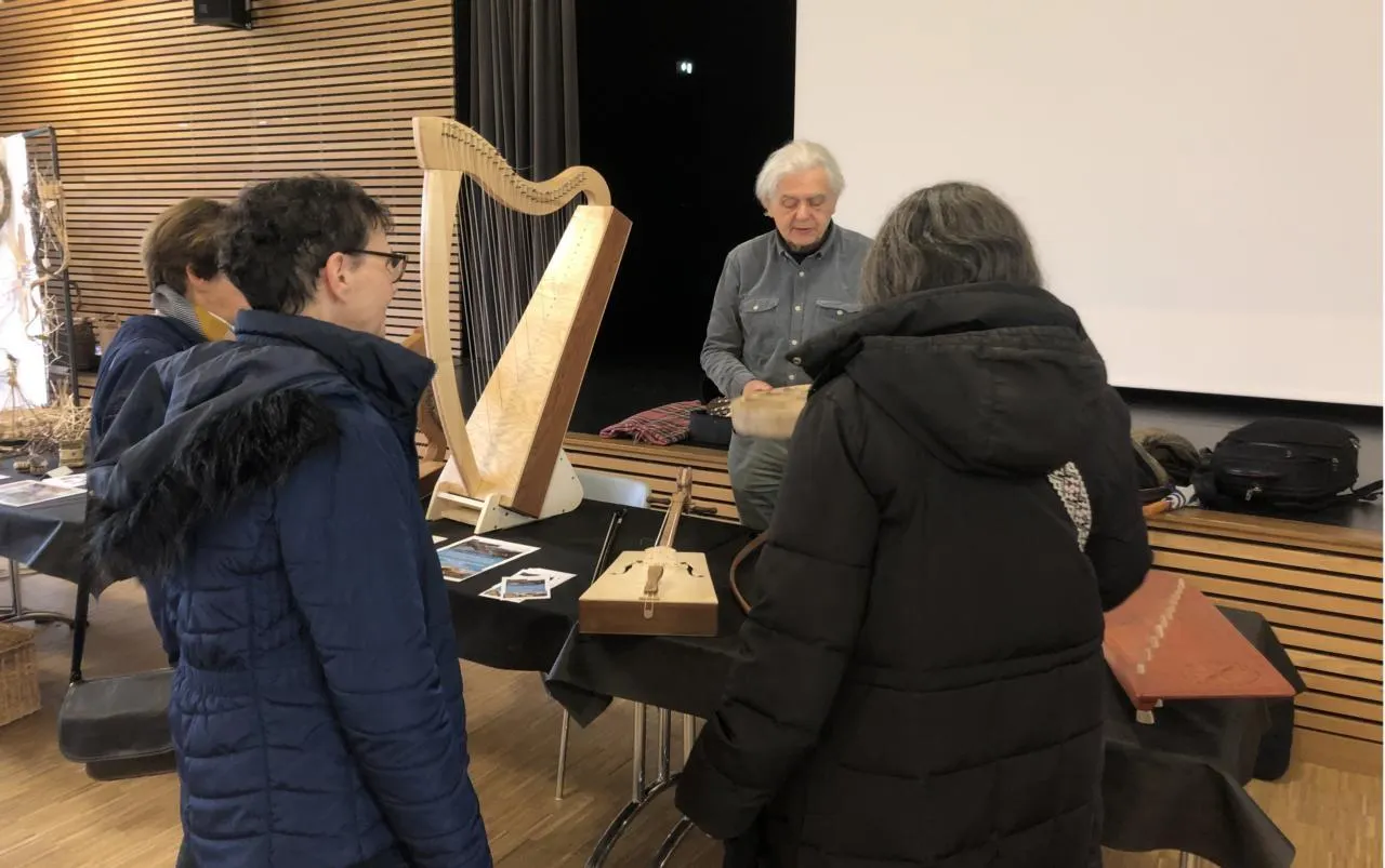 Les 500 visiteurs de cette exposition ont pu apprécier une série d’arbres sculptés prêtée par le musée Carnuta, maison de l’homme et de la forêt de Jupilles, et vivre en direct une sculpture à la tronçonneuse d’un arbre du parc de Vaujoubert. Pour la deuxième année consécutive, ils ont pu s’informer sur la fabrication des instruments de musique à cordes, et plus particulièrement d’une harpe celtique. Bernard Poulelaouen, le fondateur du Centre du patrimoine de la facture instrumentale (CPFI – Musiques du monde) du Mans, s’est dit ravi d’avoir pu mieux faire connaître sa mission de collectage et de diffusion du savoir-faire des artisans de musique du monde entier.