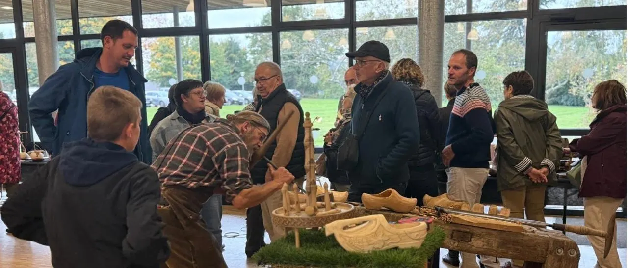 , ou les photos sur bois, mais aussi, la marqueterie, la lutherie, la vannerie et bien sûr le tournage. Beaucoup d’exposants assuraient des démonstrations de leur art ou artisanat comme Sydel Delporte, seul sabotier des Pays de la Loire, installé à Saint-Jean-d’Assé. Guy Mainguy, qui semble satisfait de ce week-end, ajoute  les deux soirées, contes et conférence ont attiré respectivement 40 et 80 personnesÂ