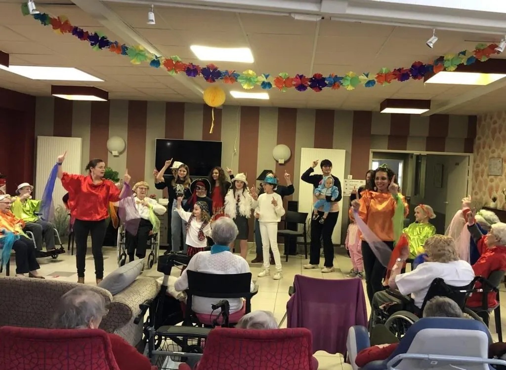 L’après-midi a débuté par « Tata Yoyo », puis les enfants du conseil jeunes costumés ont présenté des saynètes et les résidents de l’unité protégée le Jardin d’Ariane, ont chanté ou dansé sur une musique entraînante. S’en est suivie une séquence disco endiablée avec deux résidents, 98 et 94 ans, déguisés en Cloclo