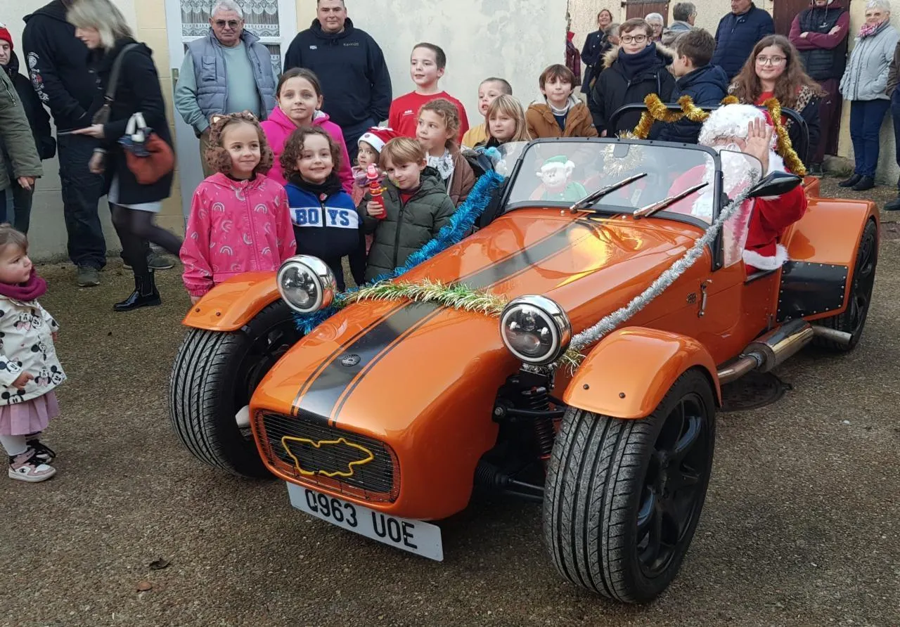 Très impatients, les plus jeunes se sont retrouvés dans une joyeuse effervescence, guettant le moindre air de musique ou tintement de cloche annonçant l’arrivée tant attendue. L’apparition du père Noël a surpris et émerveillé l’assemblée, lorsqu’il a fait son entrée à bord d’une élégante décapotable, sous les yeux ébahis des enfants. Un « traîneau » des temps modernes, prêté par un lutin du village, Ludo, heureux de participer à la magie de Noël.