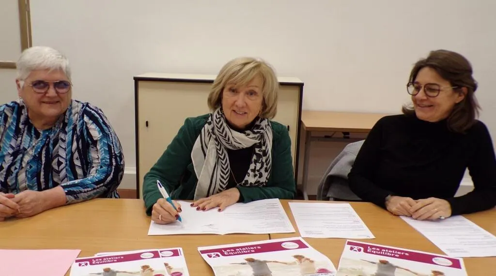 Josiane Doire, Liliane Maingard, Isabelle Beulay Brémond signent une convention de partenariat pour les ateliers Equilibr’Âge. © Le Maine Libre