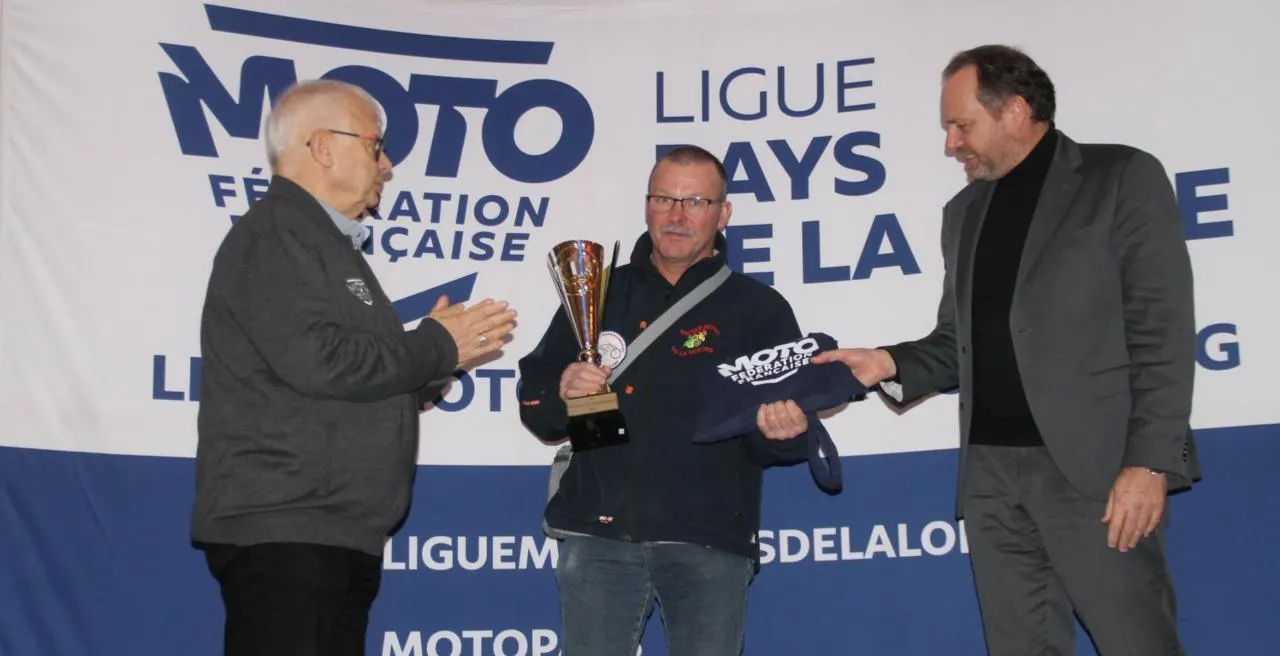 Au cours de l’assemblée générale de la ligue régionale qui s’est déroulée à Château-Gontier (Mayenne), le président de la fédération française de moto, Sébastien Poirier, lui a remis le trophée en compagnie de Patrick Coutant le président de la ligue.