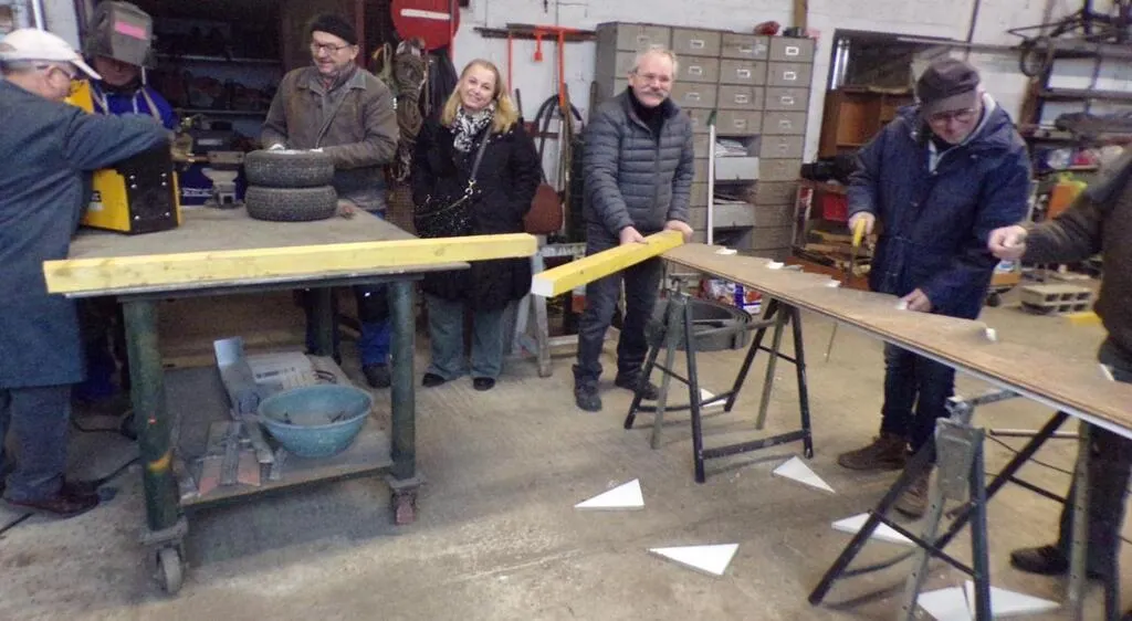 Construit avec des matériaux de récupération sur un plateau, le char nécessitera onze mardis de travail.