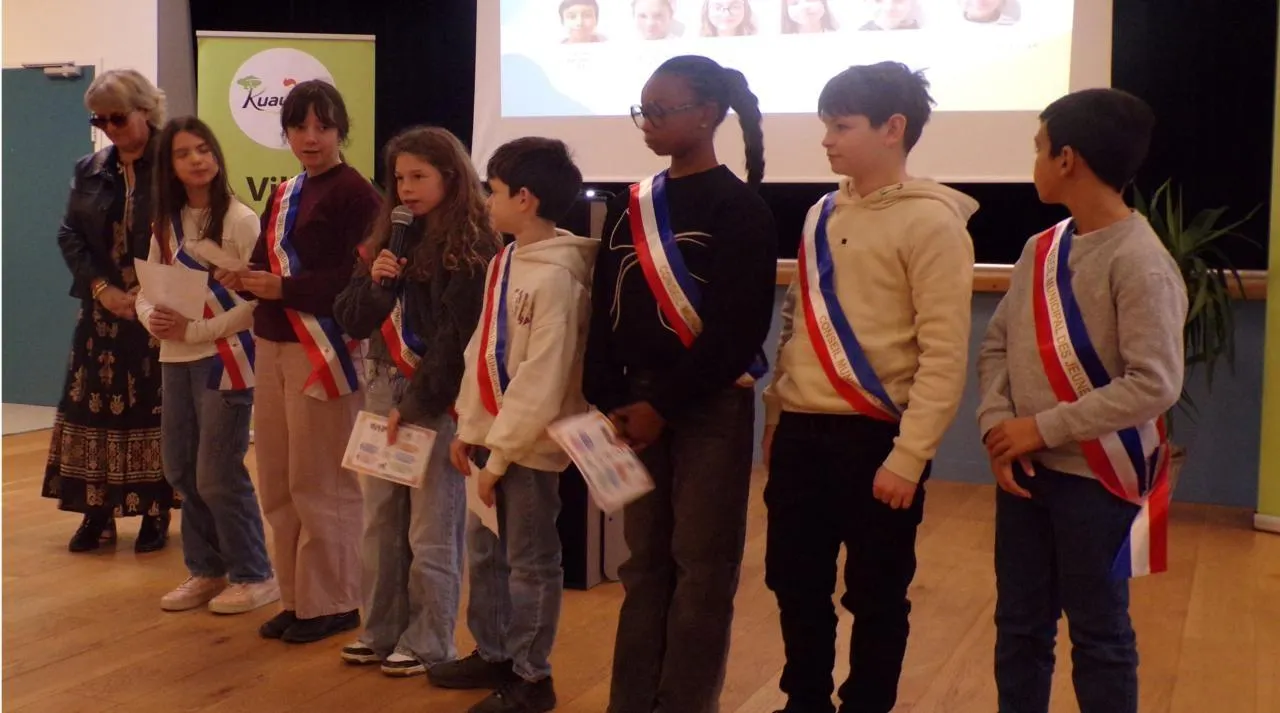 Le nouveau conseil municipal jeunes a présenté ses actions passées et à venir lors de la cérémonie. Les jeunes élus sont tout d’abord revenus sur une action solidaire menée avec les enfants du périscolaire : la fabrication de porte-clés au profit du Téléthon. Cette initiative a permis de récolter la somme de 26 €.