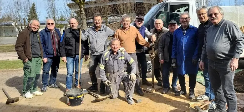 À la salle polyvalente, une dizaine d’hommes mettaient du cÅ“ur à l’ouvrage afin de réaliser une rampe d’accès au gymnase :  Ça faisait deux-trois ans que nous parlions de ce projet. C’était l’occasion de le faire aujourd’hui. Lors des R’Hunaudières, les voitures sont exposées dans la salle polyvalente. À cause d’une marche, les autos avaient des difficultés à entrer. Nous avons donc dépavé puis repavés afin de faciliter l’entrée des voitures. Ces travaux permettent également de créer un accès PMR supplémentaire.Â