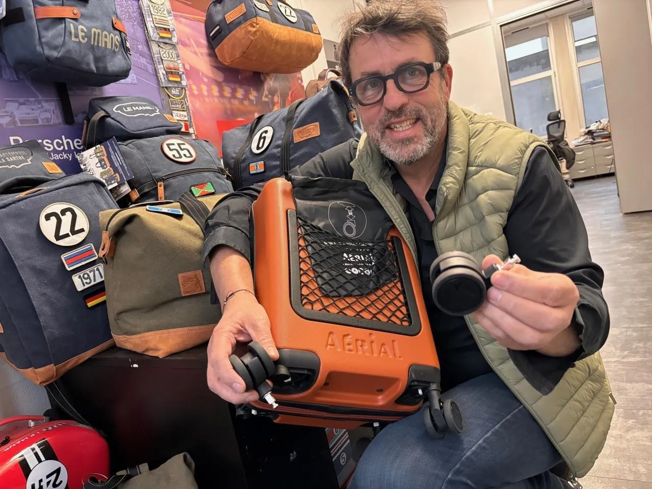 Frédéric Escolano a créé sa société de bagages il y a 25 ans. L’entrepreneur manceau vient d’obtenir un trophée de l’innovation pour sa valise à roulettes amovibles, compatible avec les différents formats exigés par toutes les compagnies aériennes. © Ouest-France