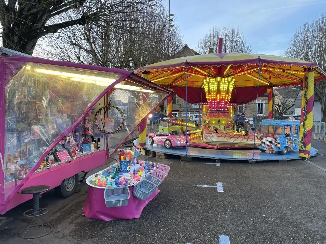 Il y a quelques mois, en novembre et décembre 2025, c’est la fête foraine qui a animé la ville, place du 8-Mai, avec une dizaine de stands. Le père Noël était venu sur place pour distribuer des friandises aux enfants sages.