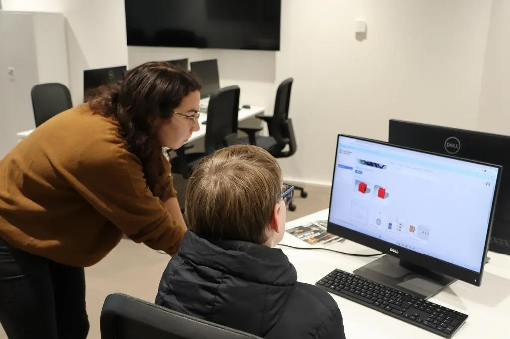 Louis suit aux côtés de Séléna, l’animatrice, la conception du pneu qu’il a modélisé sur un ordinateur. © Ouest-France
