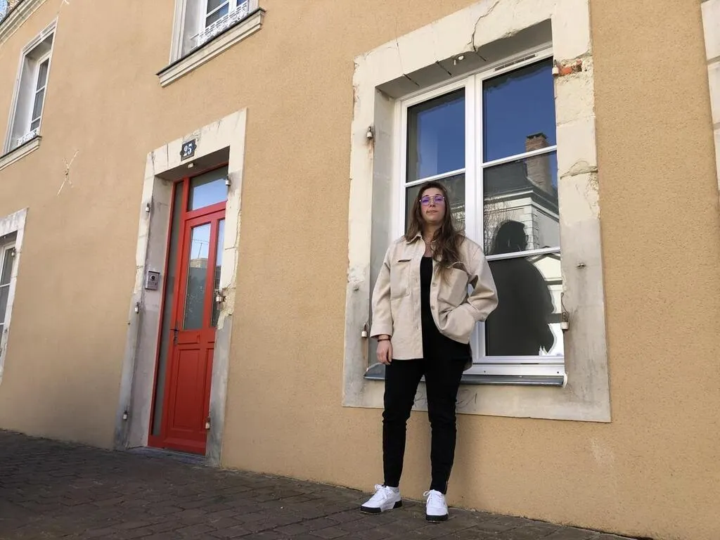 Manon Dardé, chargée de mission habitat et contrat de ville au sein de la communauté de communes du Pays sabolien, devant l’un des façades qui a bénéficié de l’Opah-Ru à Sablé-sur-Sarthe. © Ouest-France