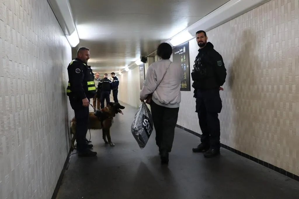 Un gendarme de la brigade cynophile était posté avec son chien dans le couloir de la gare de Sablé-sur-Sarthe, jeudi 9 novembre 2023. © Ouest-France