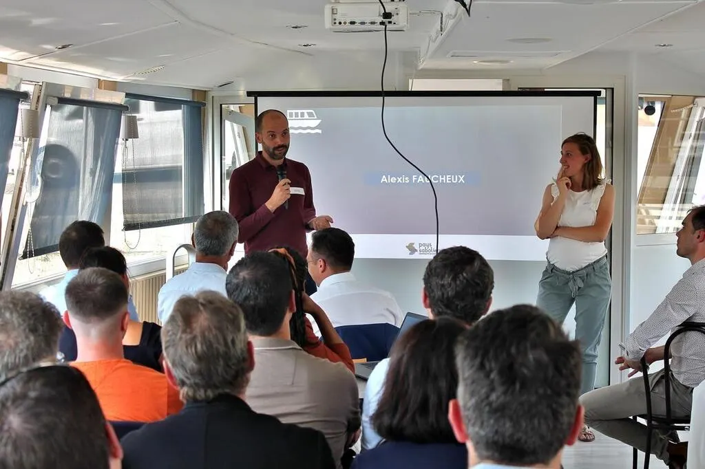 Des nouveaux acteurs du tissu économique sabolien ont été invités à bord du Sablésien II, jeudi 2 juin 2022. © Ouest-France