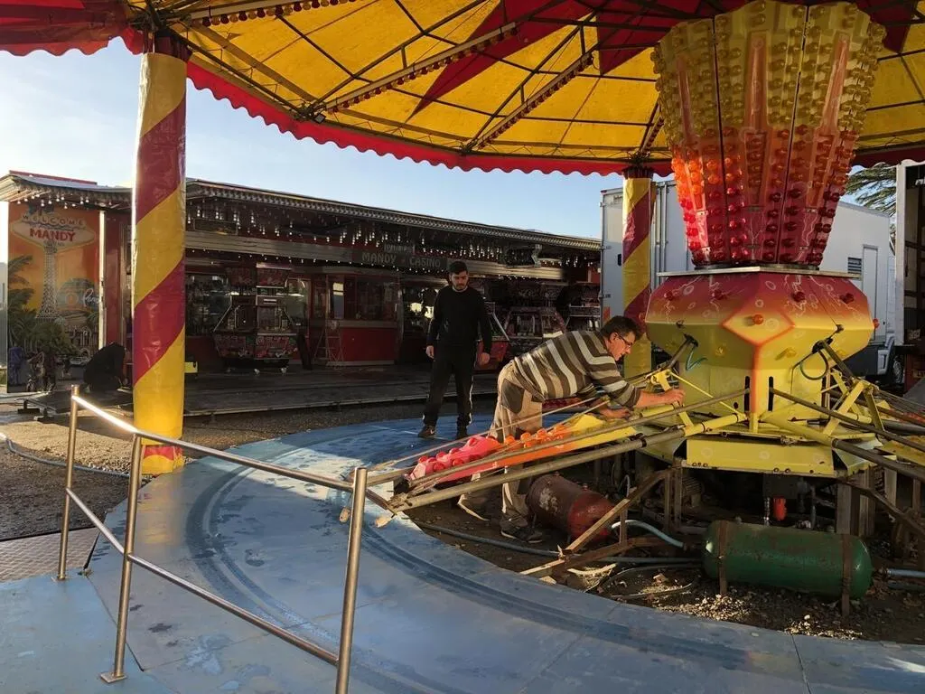 Lundi, c’était jour de démontage pour la fête foraine de Sablé-sur-Sarthe après huit jours d’activités. © Ouest-France