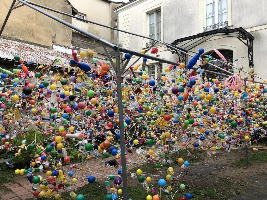 L’œuvre de Yabon Paname, le nom d’artiste de Franck Hiltenbrand, est pour le moins insolite. Une structure de barnum, des tancarvilles pliés en tous sens et des objets hétéroclites suspendus, ramassés de-ci de-là , en mode inventaire à la Prévert : le tout forme un labyrinthe, baptisé « La maison de courants d’air » qui prend ses quartiers dans la cour du collège imaginaire de Sablé (Sarthe) jusqu’au 24 octobre 2021.