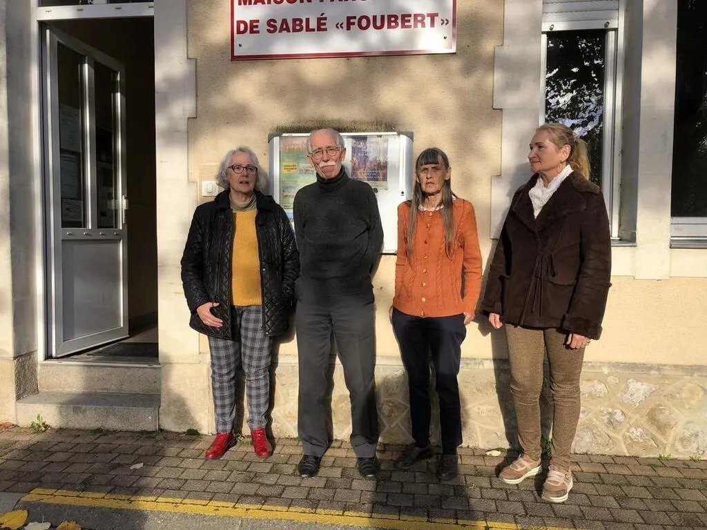 Autour de Gérard Frétellière, sa femme Marie-Françoise, Pascale Fromentière et Marie-Joseph Pinaud constituent les bénévoles de l’antenne sabolienne de la pastorale des migrants. © Ouest-France