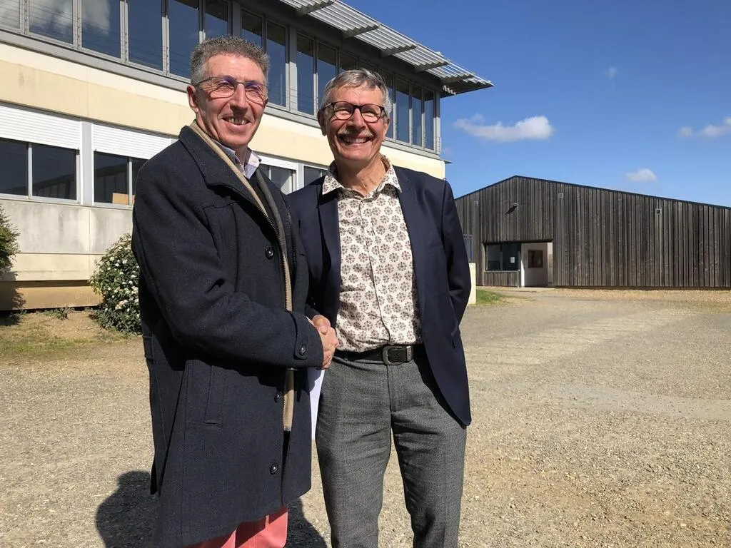 Michel Dauton (à gauche) est dorénavant le nouveau président de l’association de gestion des écoles de sciences de la vie en charge du lycée Val de Sarthe. Il succède à Joël Landais, président depuis 2017. © Photo : Ouest-France