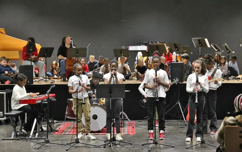 La classe orchestre à l’école et la section musique actuelle de l’établissement Saint-Exupéry, à Sablé-sur-Sarthe, se sont produites en concert avec des élèves du conservatoire, salle Madeleine-Marie, lundi 30 janvier 2023.