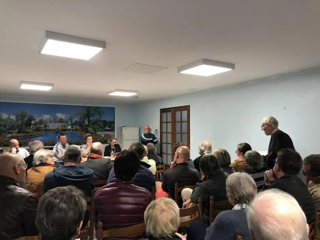 La salle du club de boule de fort Les Constructeurs affichait complet mercredi 12 octobre 2022 pour la réunion publique du collectif centre-ville. © Ouest-France
