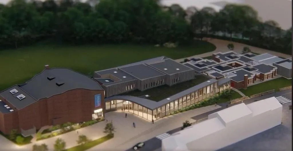 Une vue d’artiste du futur pôle culturel du Pays sabolien, en construction rue Saint-Denis, à Sablé-sur-Sarthe (Sarthe). © Cabinet d’architecture Blanchard Marsault Pondevie