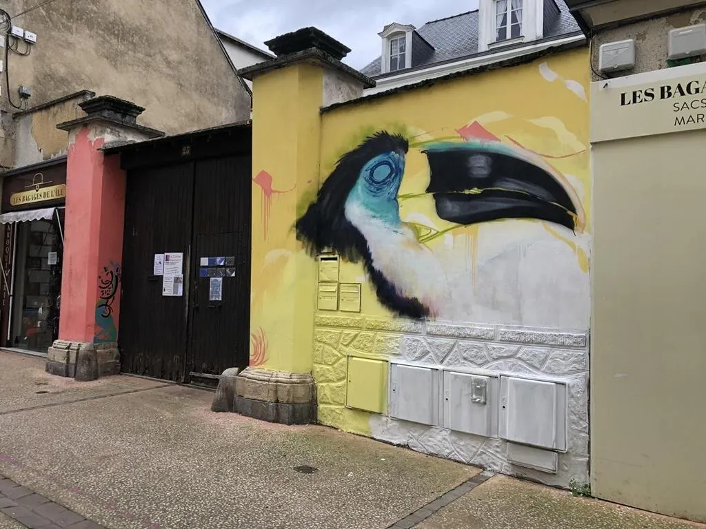 Sablé-sur-Sarthe. Rue de l’île, la fresque représentant un toucan a été gommée... |