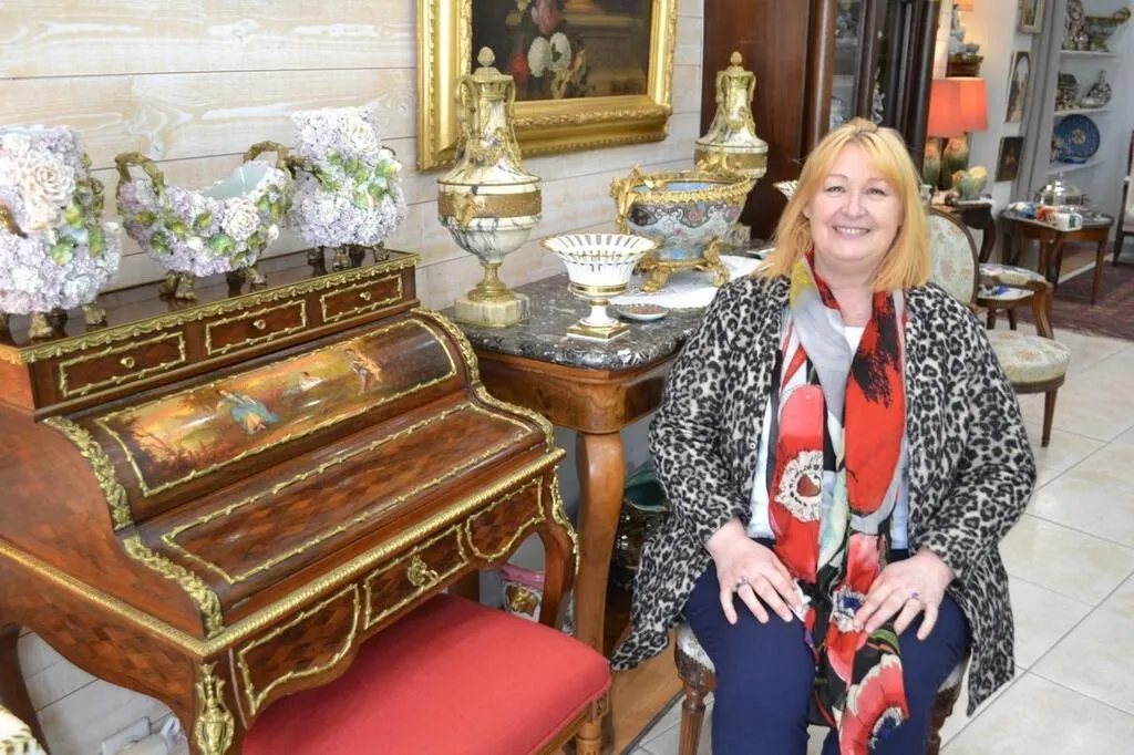 Patricia Gustin vient d’ouvrir mi-mai 2023, à l’entrée de la galerie Saint-Martin, place Raphaël-Elizé à Sablé-sur-Sarthe, une boutique d’antiquités et d’objets d’art « Aux trésors d’Antan ».