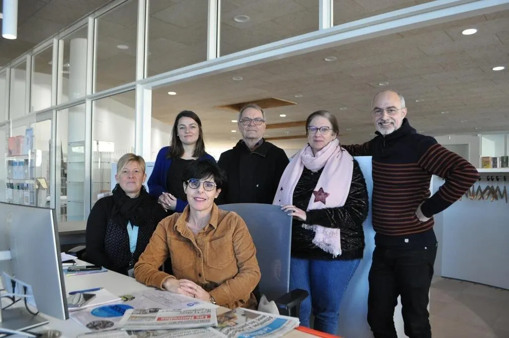 Une petite partie de l’équipe de l’Apostrophe au côté de Jean-Louis Lemarié, vice-président de la CDC du Pays sabolien, et de Roland Bouchon, directeur de l’action culturelle au sein de la CDC (à droite). © Le Maine Libre