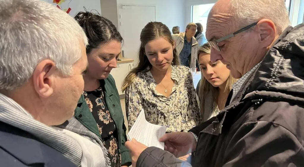 Les assistantes maternelles partagent leur projet avec les élus, ici lors de l’inauguration. © Archives Le Maine Libre